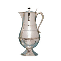 Brass Church Flagon With Nickel Plating Finishing Round Shape Elegant Design Cross On Lid Handmade For Serving Drinks